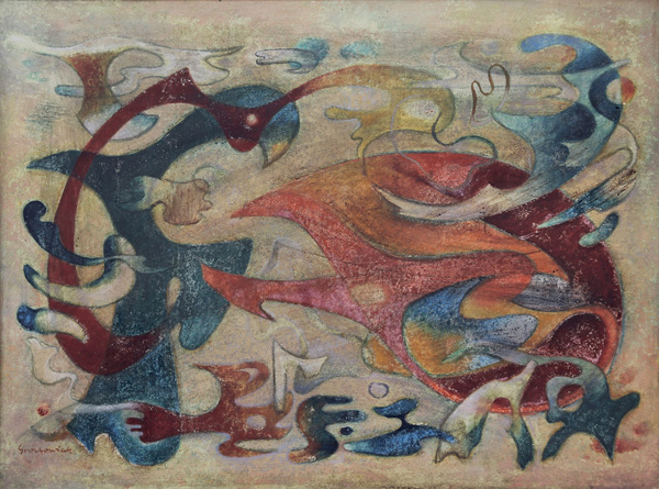 Thomas Grochowiak Allegro vivace nach Mozart: »Jupitersinfonie« 1947, Öl auf Hartfaser, 54 x 72 cm © Thomas Grochowiak