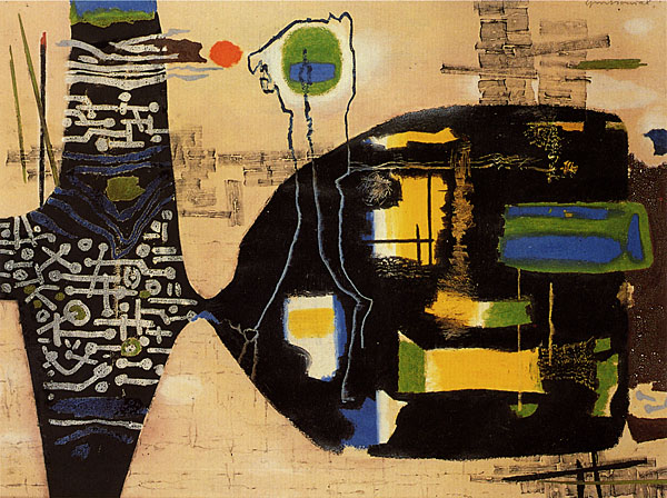 Thomas Grochowiak Gekoppelte Energiefelder 1956, Pastell und Ölkreide, 48,5 x 64,5 cm © Thomas Grochowiak
