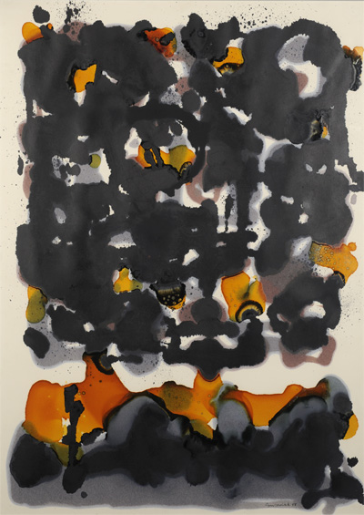 Thomas Grochowiak Durchlichtet über Blau (2. Fassung) 1959, synthetische Tusche, 103 x 73 cm © Thomas Grochowiak