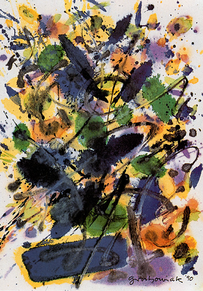 Thomas Grochowiak Etüde nach Mozart: Menuetto allegretto aus: Sinfonie C-Dur (Jupiter), KV 551 1990, farbige Tusche auf Papier, 30 x 21 cm © Thomas Grochowiak