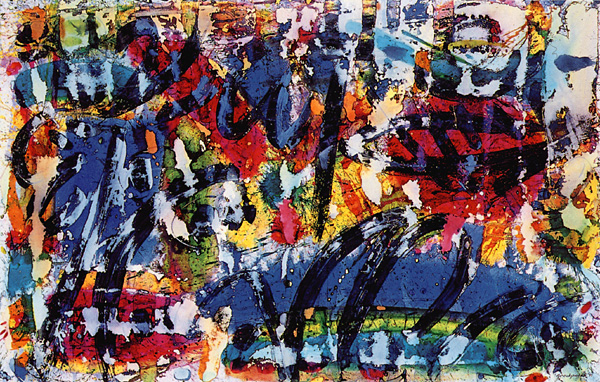 Thomas Grochowiak Nach Mozart: Menuetto aus: Sinfonie B-Dur, KV 319, (2. Fassung) 1991, farbige Tusche auf Fabriano, 100 x 150 cm © Thomas Grochowiak