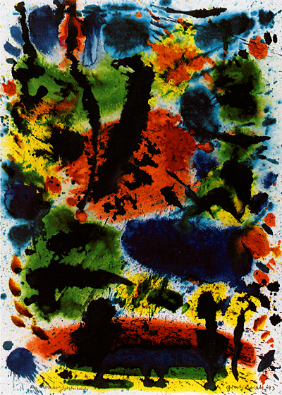 Thomas Grochowiak Nach Mozart: Konzert für Klavier und Orchester c-Moll, KV 491, 3. Satz 1993, farbige Tusche auf Bütten, 100,5 x 70 cm © Thomas Grochowiak