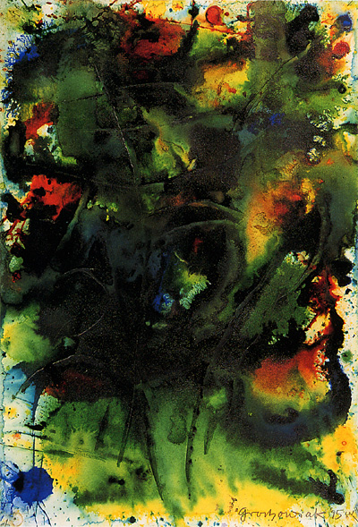 Thomas Grochowiak Nach Claude Debussy: Sonate für Flöte, Harfe und Bratsche I 14. Juni 1995, farbige Tusche auf Fabriano, 31 x 46 cm © Thomas Grochowiak