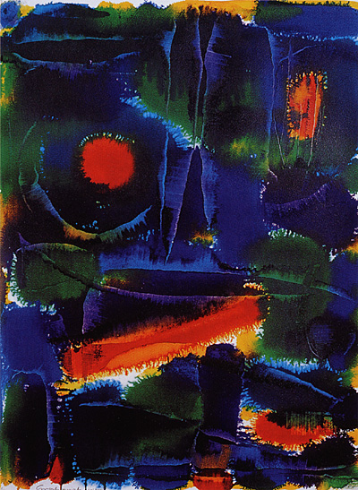 Thomas Grochowiak Flötenquintett, op. 51, Nr. 2, E-Dur – Andante – (2. Fassung) 2000, farbige Tusche auf Bütten, 75,3 x 54,7 cm © Thomas Grochowiak